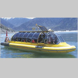 船體材質(zhì)玻璃鋼,具有強(qiáng)度高、重量輕、耐腐蝕、不怕日曬雨淋、色彩艷麗、外型美觀的特點(diǎn)。艙內(nèi)牽引電機(jī),電瓶驅(qū)動,沒有污染,可由游客自行駕駛。